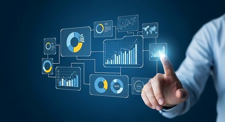 Interactive Data Visualization: Man Touching Glowing Charts on Digital Interface