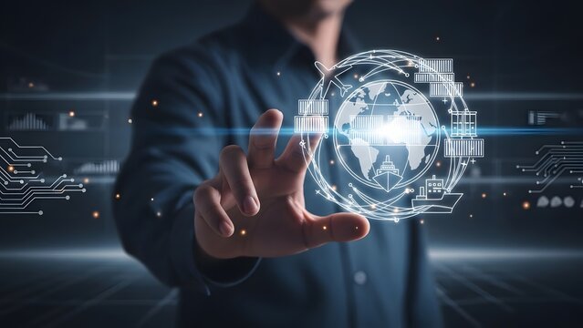 Businessman Engaging with Virtual Interface: Modern Technology and Innovation in the Digital Era