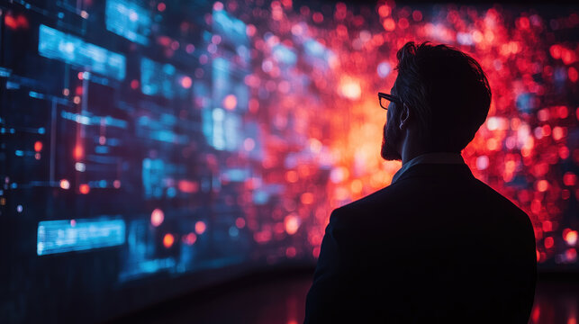 CEO presenting innovative ideas using holographic screens at a technology conference, engaging the audience with futuristic business solutions and digital advancements. Copy space