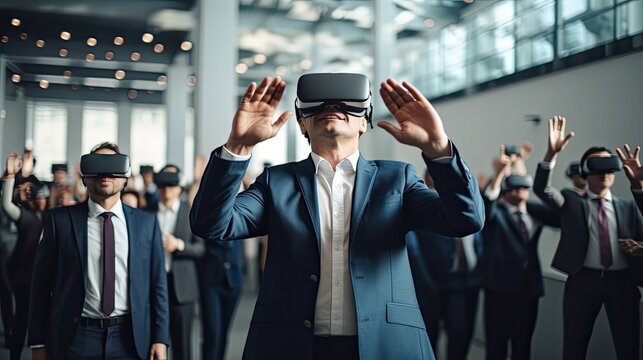 A virtual reality headset, indicative of casual business and cutting-edge technology integration, rests on a table in a modern workspace.