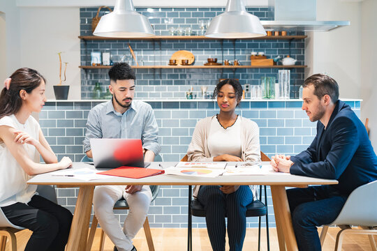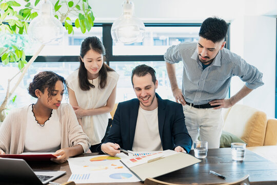 Diverse business team analyzing global branding strategies