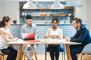 Business team analyzing financial data in collaborative environment