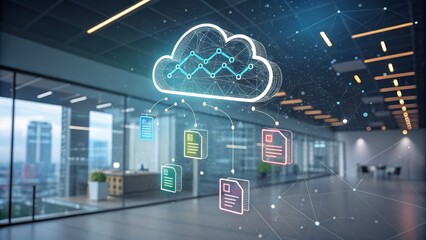 Data Analysis Cloud Solutions Modern Office Environment Digital Content Urban Setting Perspective on Innovation