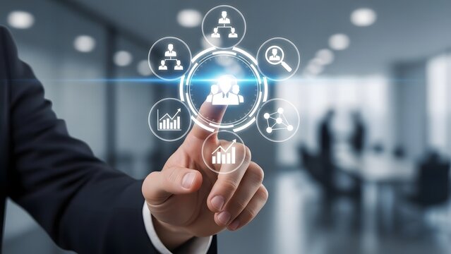 Digital Human Resources Management and Organizational Structure Displayed on a Virtual Interface.