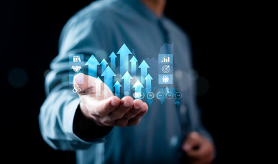 Financial business data analytics graph dashboard. Businessman using KPI dashboard. Management data System KPI connected in database for follow earnings,operations and sales data.