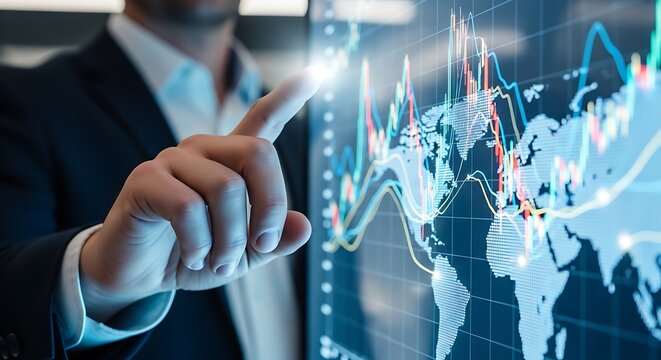 Businessman Analyzing Stock Market Data on Digital Touchscreen Display