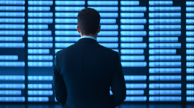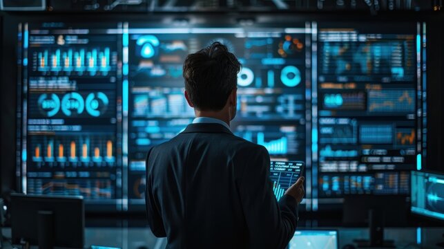 Businessman Analyzing Data Visualization Interface In Modern Office Images