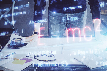 Student or teacher with mathematical and scientific formulas. Concepts of education.