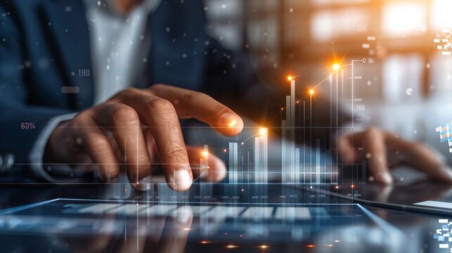 Professional using digital interface for financial data analysis