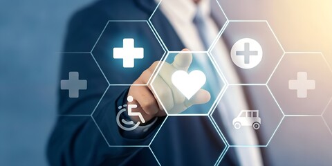 Interactive Business Flowchart. A professional businessman in a suit touches an illuminated digital flowchart, symbolizing strategic planning and innovation in business technology.