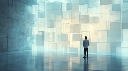 Person Contemplating Digital Data in Futuristic Space