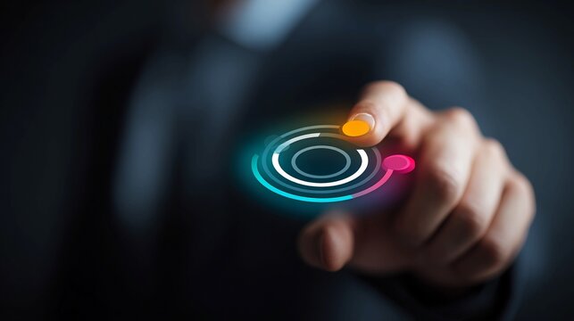 Businessman interacting with futuristic digital interface icons for growth,target,innovation and success,representing modern corporate strategy and planning