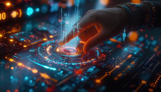 Futuristic financial data interface and analysis display