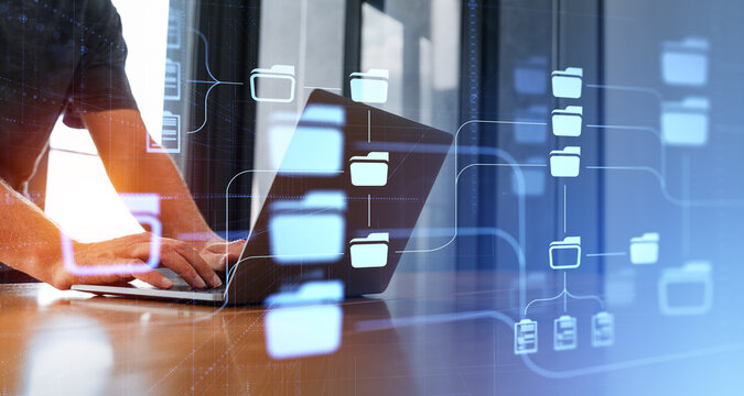 Backup File. businessman using stylus to interact with cloud computing interface on laptop computer, cloud computing, backup storage management, artificial intelligence, network technology concept