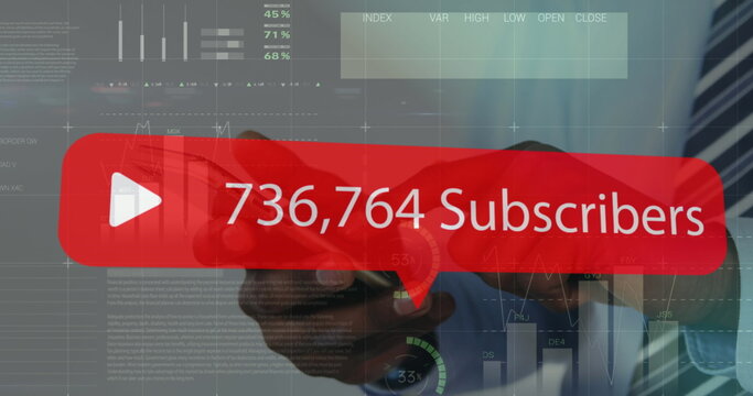 Image of hand of caucasian businessman using smartphone and financial data processing