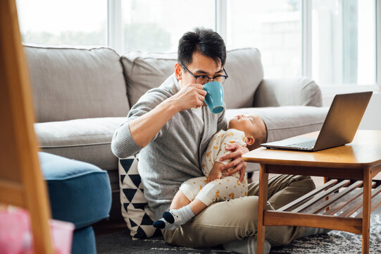 father and baby at home