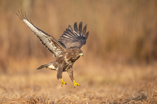 Animal wildlife photography - Common buzard ( Buteo buteo ) with wings flying wide open