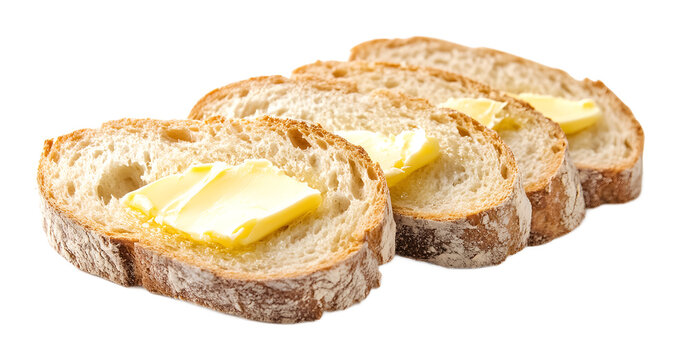 Sliced Rustic Bread with Butter on a Wooden Cutting Board, rustic , bread , butter, cutting board