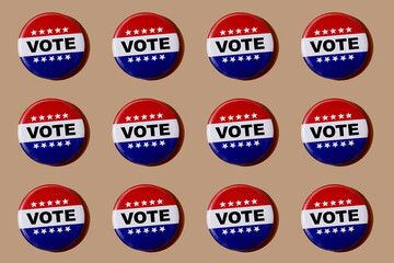 Democrat vs republican poll, democratic decision and primary voting conceptual idea with Vote election campaign button badges and the united states of america flag