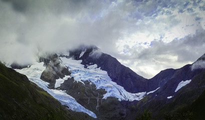 Byron Glacier under fog in Girdwood, Alaska