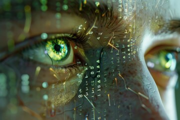 Digital code streams in futuristic interface