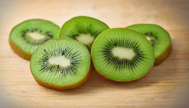 fresh green kiwi fruit slices packed with vitamins like vitamin c fiber antioxidants and great nutrition for a healthy dessert smoothie or salad recipe promoting wellness