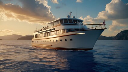 Luxury cabin cruiser on the florida intra-coastal waterway with luxury island homes in the background.