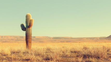Desert sunset action with cactus plant in nature landscape peaceful environment aesthetic viewpoint