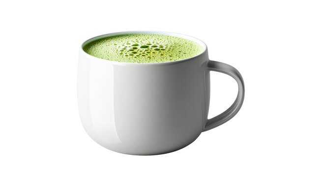 Invigorating green matcha tea with a frothy top in a minimalist white ceramic mug ideal for health and wellness beverage promotions and caf menu presentations.