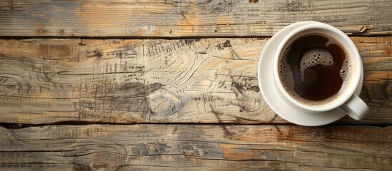 Kaffee und Kuchen auf weißem Holztisch - Banner mit Textreiraum