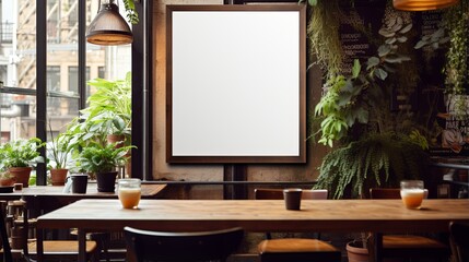 template mockup blank white area poster canvas gallery frame for creative advertisment backdrop showcase ideas in coffeeshop interior background concept