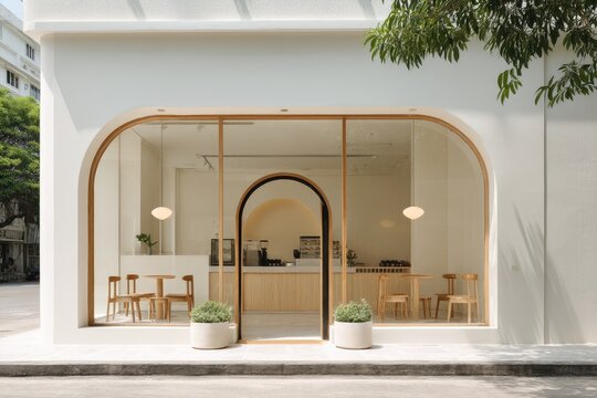 Modern coffeehouse facade with sharp lines and sleek design enhanced by inviting decor