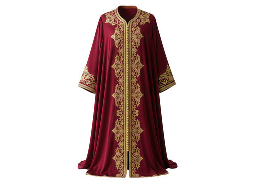 Maroon caftan with golden embroidery isolated on transparent background
