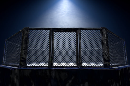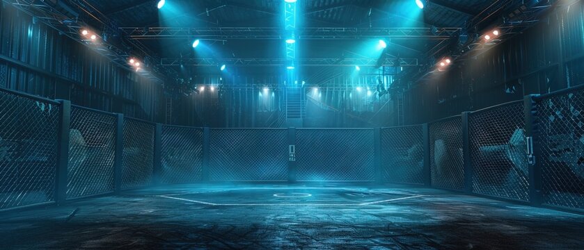 Professional mma cage arena with spotlights