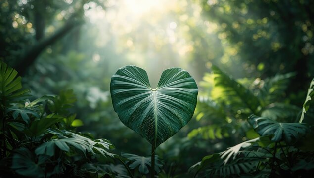 Heart-shaped Caladium Leaves Bright Green and White Striped in Studio