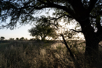Calden trees sunset in La Pampa Argentina