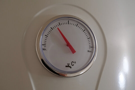 Water heater thermometer. Water in boiler is cold, boiler must heat the water