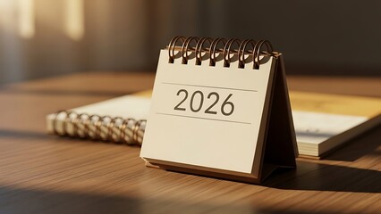 Desk calendar displaying year 2026