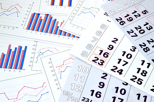 Financial charts and calendar