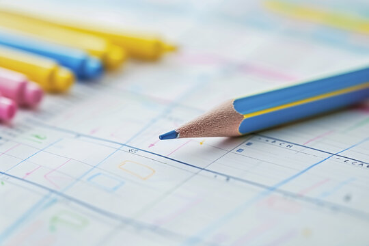 A modern workspace featuring hands typing on a keyboard next to a colorful calendar. This setup showcases efficient time management tools ideal for productivity-focused environments. Gantry