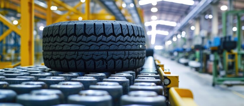 Treaded tire marked on factory conveyor