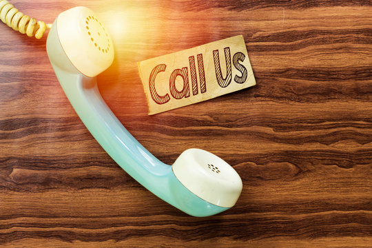 aqua old retro phone with call us card concept
