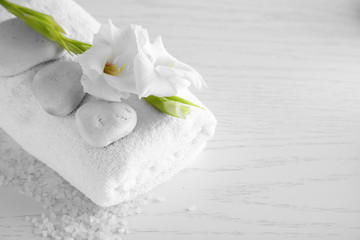 Beautiful spa composition on wooden table