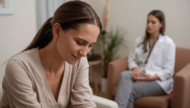 Young woman receiving confidential counseling in calm clinic with caring female doctor