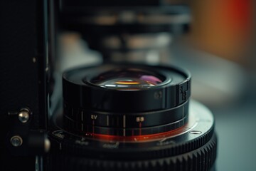 Close-up view of a telephoto camera lens showcasing intricate details and precision optics for photography enthusiasts and professionals
