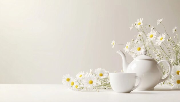 Herbal camomile tea on a plain background, beneficial beverage choice