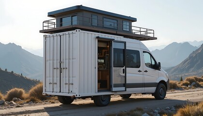 Cozy interior of a kitchen in a trailer. Travel concept. Generative AI