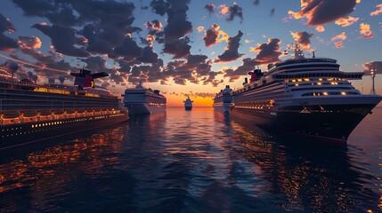 At dusk walt dream cruise ships anchored in port canaveral very detailed and realistic shape