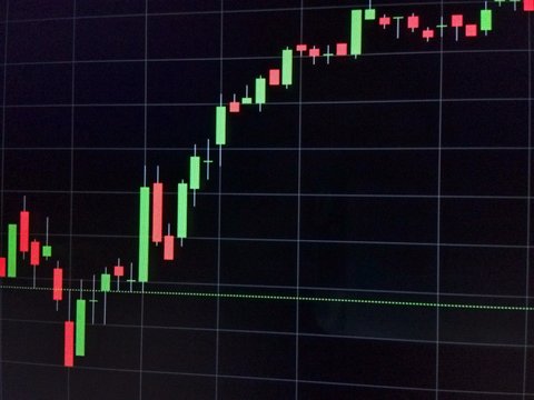 Stock exchange monitor screen candle bar chart of business value grown up concept.