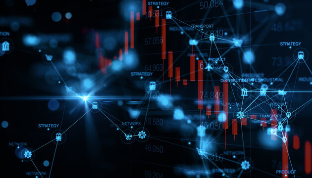 Abstract financial chart with vibrant colors and digital effect